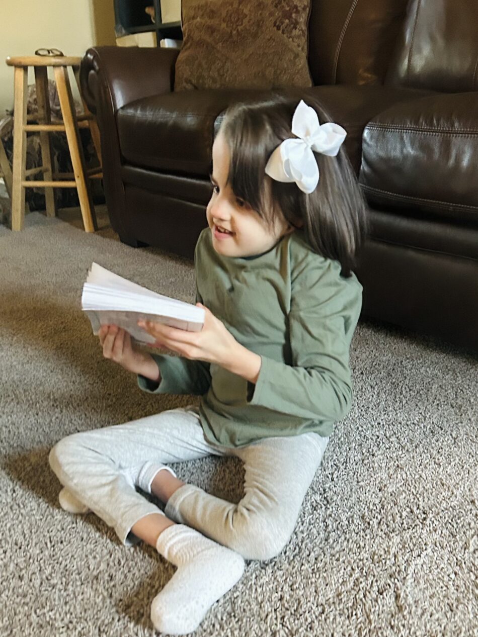 Melody (full Trisomy 18) appears to understand things in a way that never ceases to amaze me. One illustration of Melody’s understanding is that she loves to read chapter books! Her love of reading, in fact, is insatiable. When we took the Doman training many years ago, we learned how essential it is for Melody to crawl in order to make brain connections. One of the instructors at the Doman Institute told me one time that Melody would someday be motivated to crawl for books. At the time, it seemed like a nice idea, but now it is a reality. We think she knows how to read, but she has a cataract which makes reading small print more challenging. Thus …
